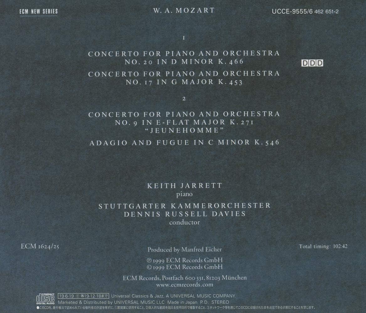 ふたりがモーツァルトに挑戦したファン垂涎の必見dvdです。 キース&チック プレイ・モーツアルト ライブ・アット・ゆうぽーとホール、五反田、1985 k.488 1.allegro k.488 2.adagio k.488 3.allegro assai k.466 allegro k.466 2.romance k